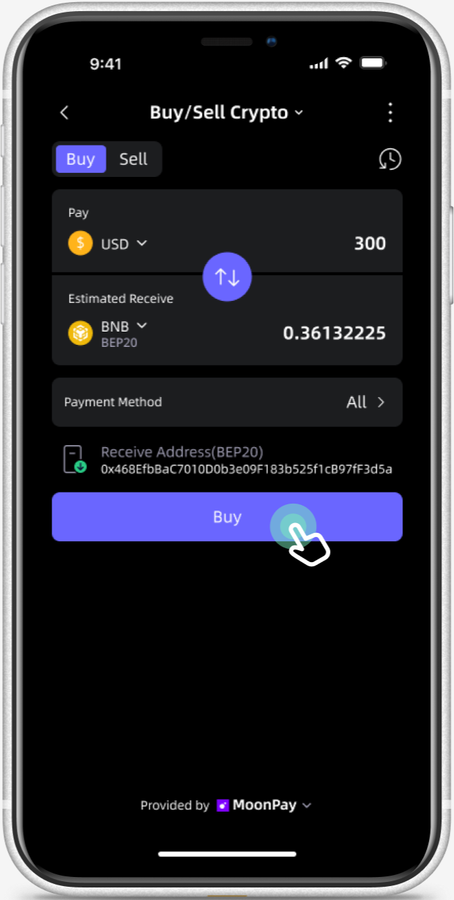 In order to provide users with a convenient and fast fiat-to-crypto channel, SafePal has integrated a new fiat-to-crypto service provider: MoonPay, all its terms of use, rules, and restrictions are consistent with MoonPay.