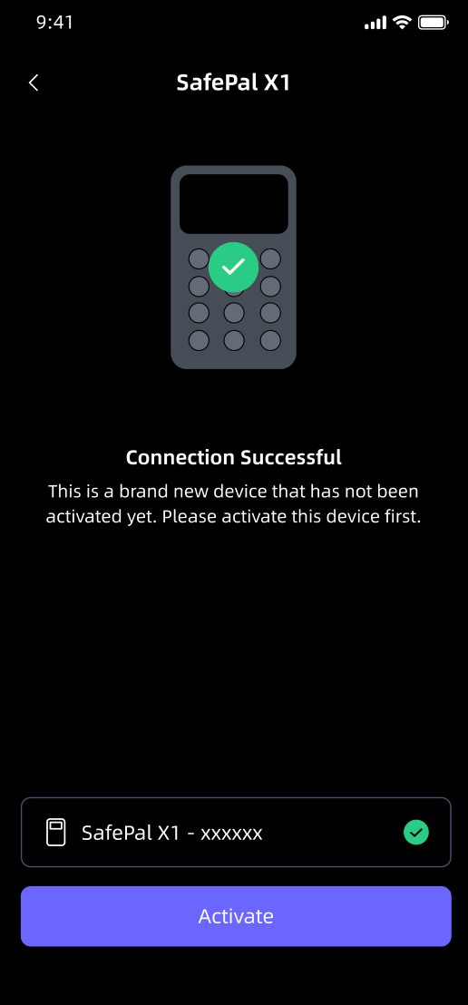 After the connection is successful, click ‘Activate’ on the SafePal App to complete the activation of the device.