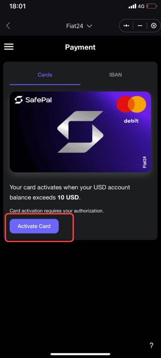 Step3 Activate the SafePal Fiat24 Card