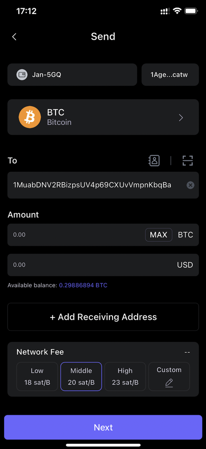 5. Past the first address and enter the amount, then sign to complete the transaction.