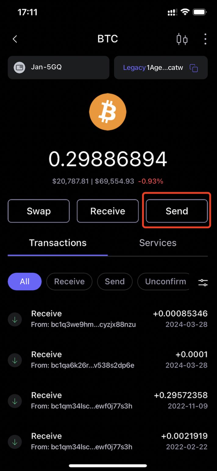 6. After the transaction is completed, your Bitcoins will be recorded at the first address.