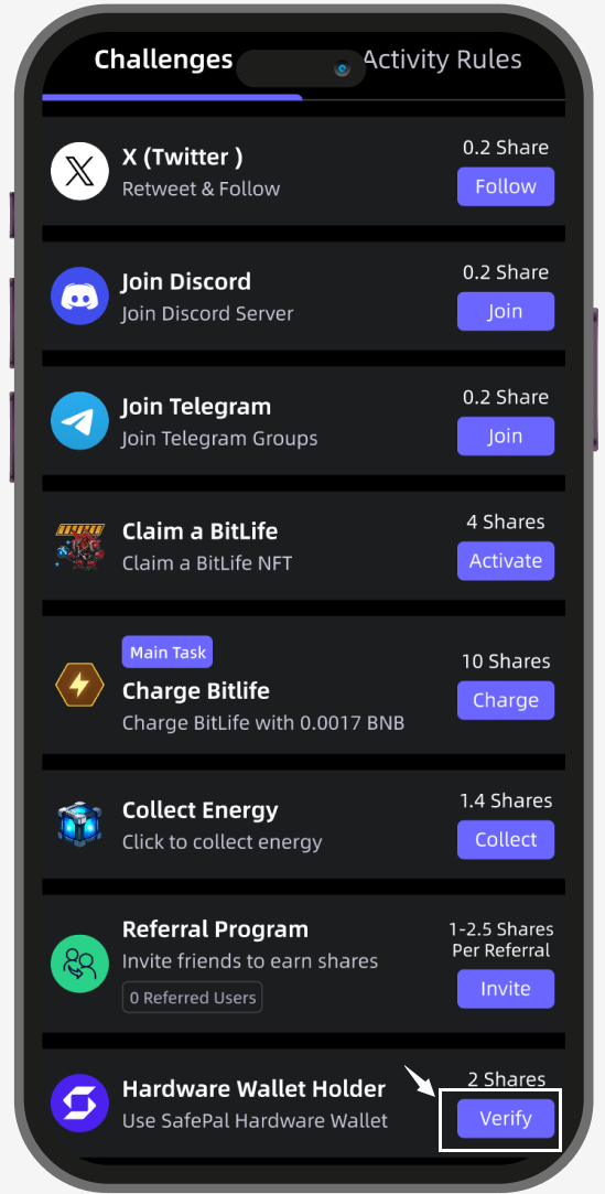 Important: Participants are required to complete the main ‘Charge BitLife’ task. Otherwise, the share of this task will be considered invalid. Please make sure to complete the main task of the campaign.