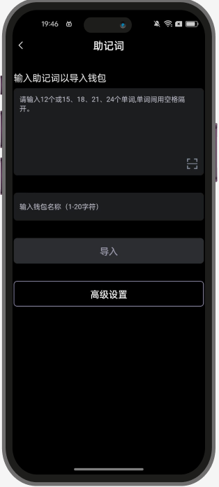 然后您就可以在输入框里输入助记词来导入/恢复钱包了。过程中,请注意以下细节:
