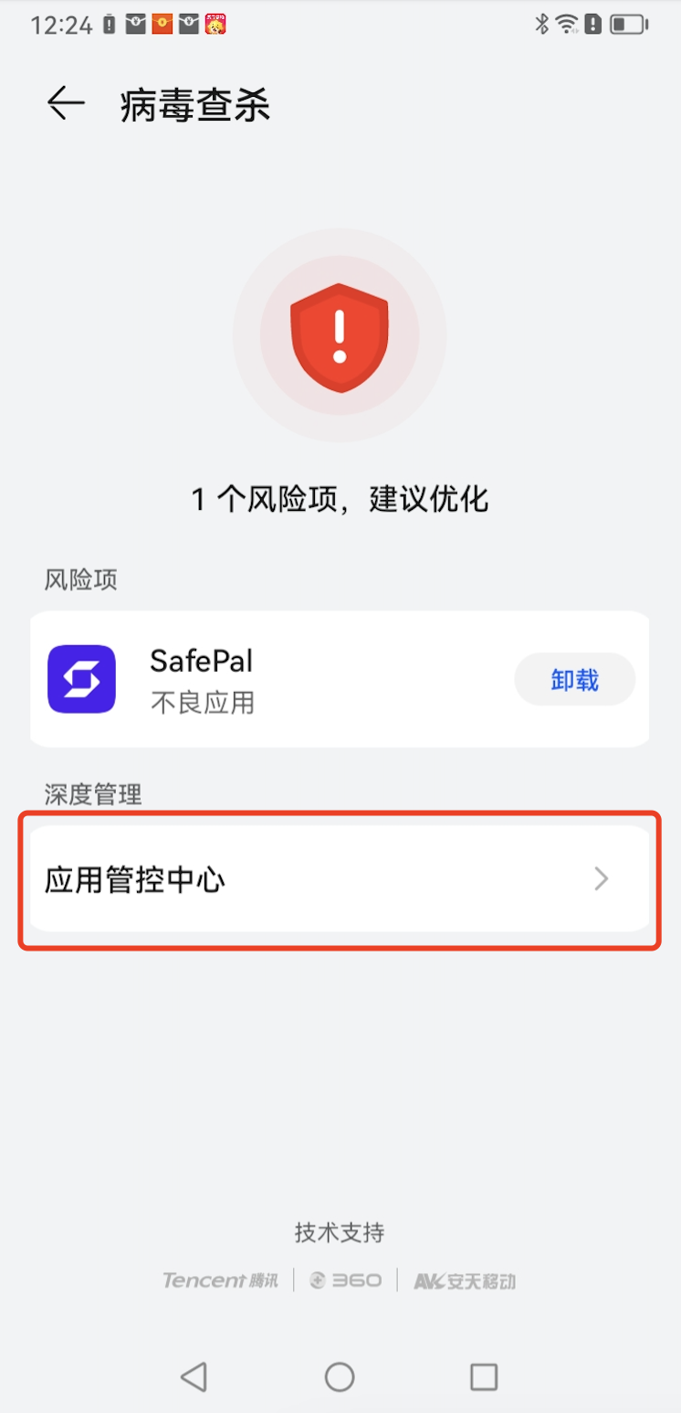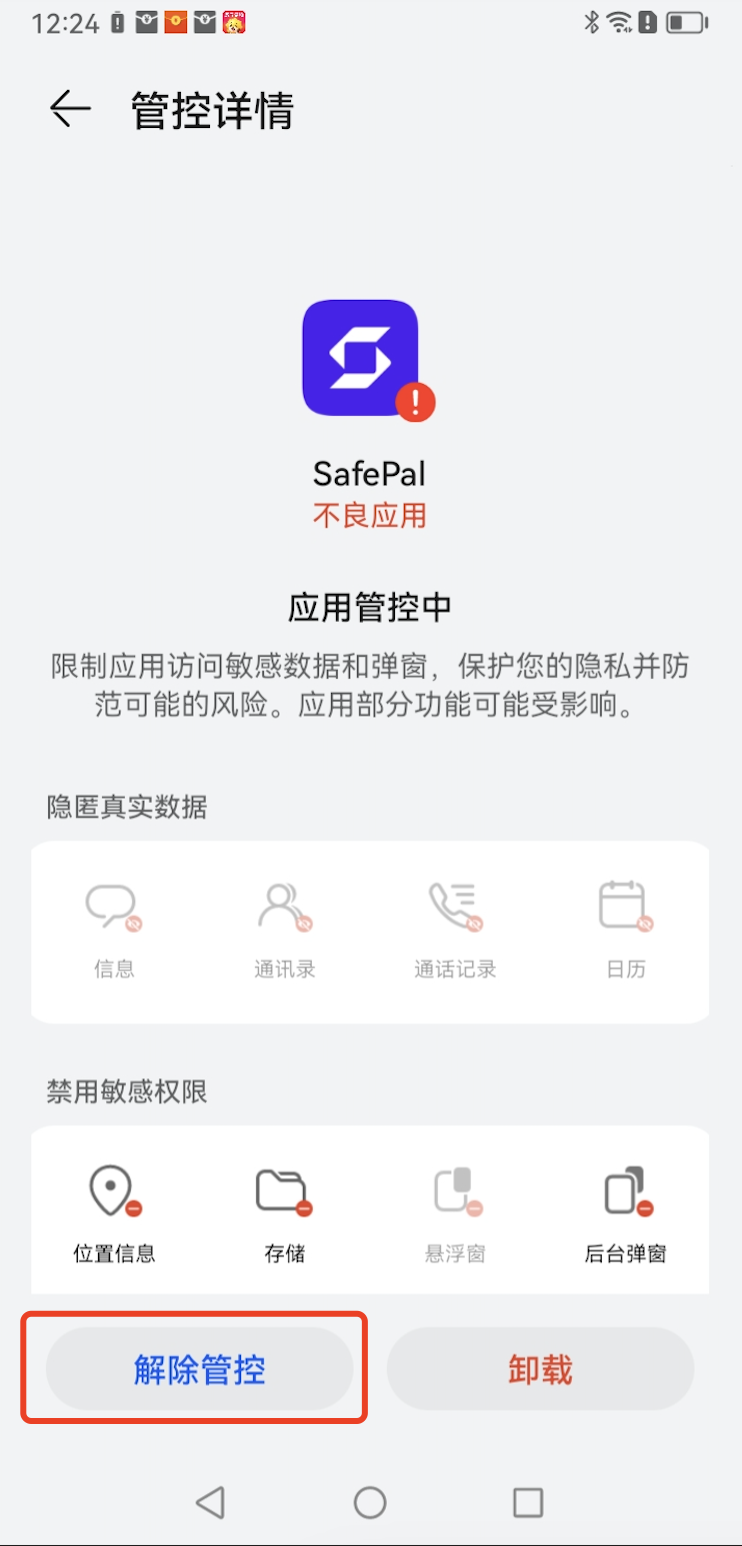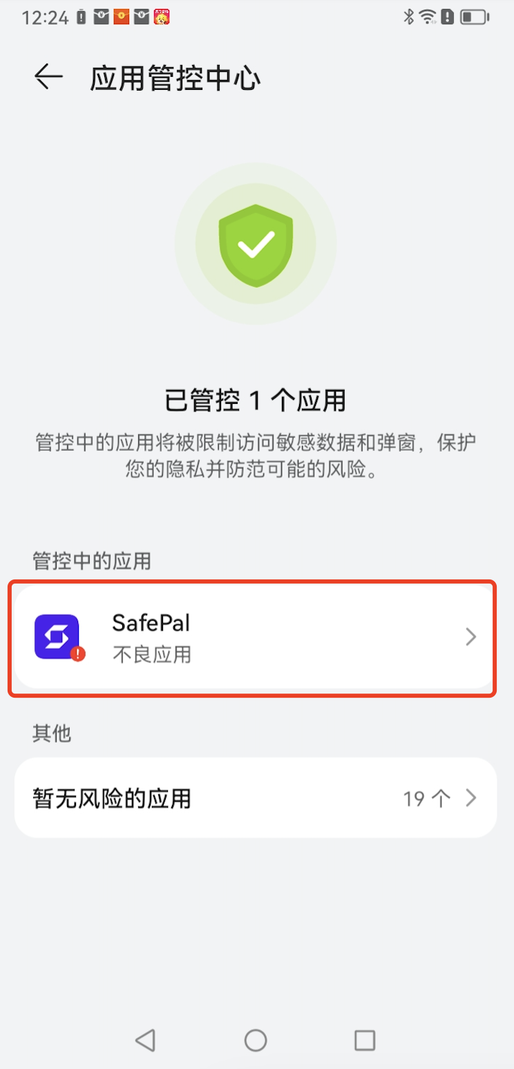 当您激活并设置了SafePal X1硬件钱包,并尝试将其绑定到SafePal App时,若出现 “系统错误(code=-8756)”,请确认您的手机是否为华为国行版本。如果是,此报错有可能是您手机内置的手机管家将SafePal App误判为风险应用。请按照以下方式解除风险管控,然后再进行X1硬件钱包和SafePal的绑定。如果您使用的不是这款手机机型,请在此提交工单以便我们的客服团队进一步排查。