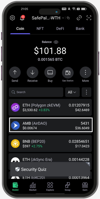 The first step is to download the latest SafePal App from here, set up the SafePal App V4.6.1 or above on your phone first, and create or import a wallet into your SafePal App. $AMB(AirDAO) is supported on the SafePal App latest version 4.7.0 or above, so please upgrade your App to the latest one first.