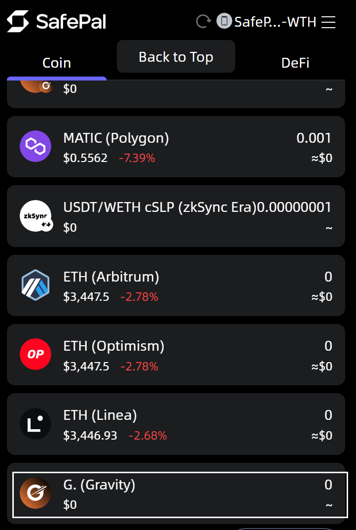 A notification ‘Added’ will pop up for a short while to indicate the coin is successfully added. You will then be able to check and find the $G.(Gravity) coin in the Asset list.
