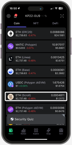 A notification ‘Added’ will pop up for a short while to indicate the token is successfully added. You will then be able to check and find the $ETH(Scroll) in the Asset list.