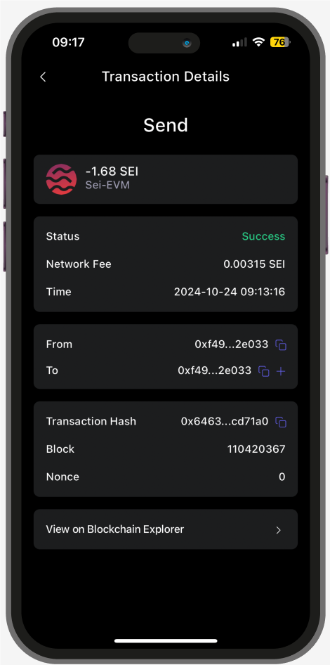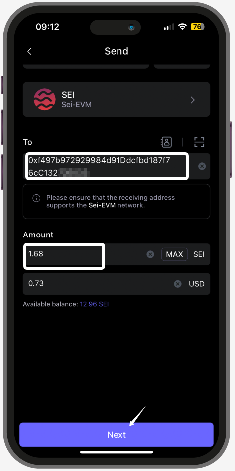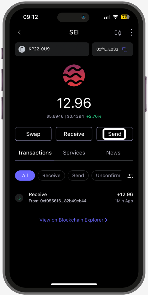 Gently click on the $SEI coins that you want to send out, and click ‘Send’.Enter the amount and receipt address of the transaction, and click 'Next'.