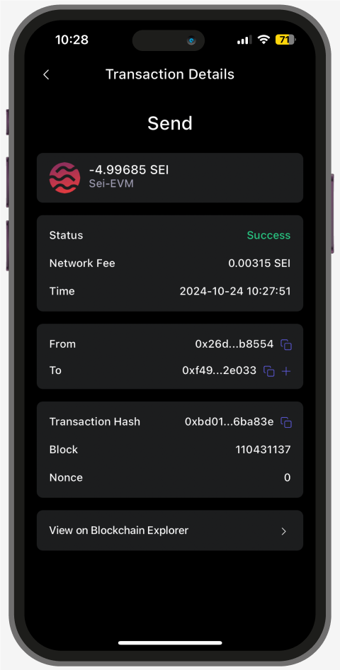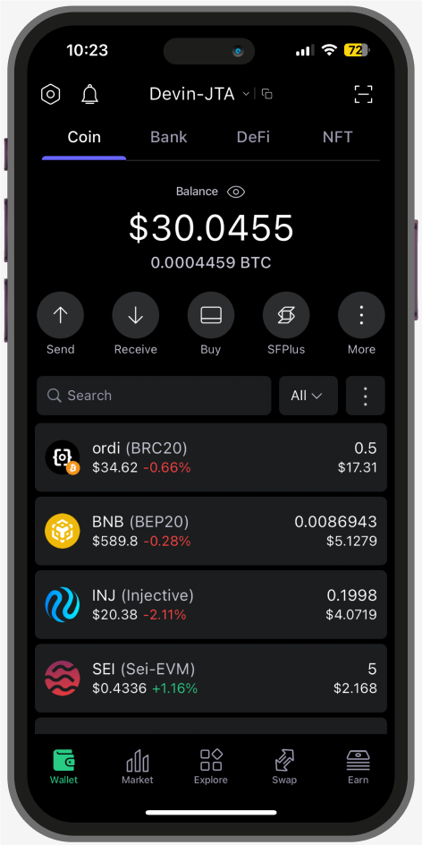Open the X1 wallet on your SafePal App(which you paired via the Bluetooth), click the $SEI.