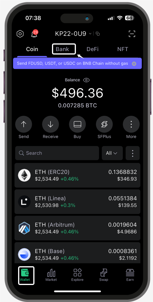Open your SafePal App, click 'Bank' on the wallet page.