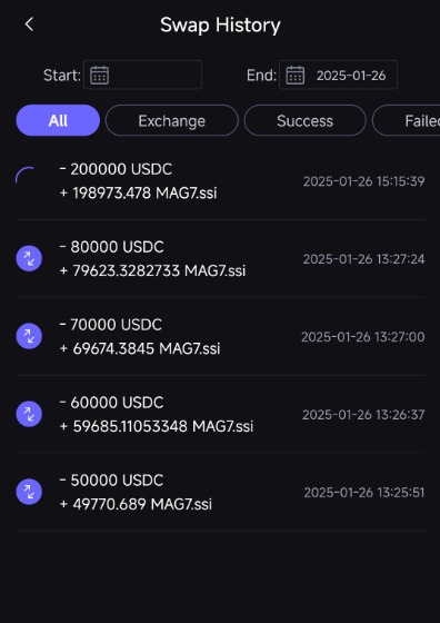 Once the signing completes, kindly wait for the order to complete. It usually takes 15 to 30 minutes to complete a swap order, depending on the blockchain traffic. Please wait patiently during the actual swap process. You can view all the Swap orders by clicking the order book icon on the right upper.