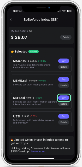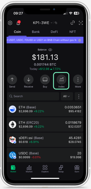 Search and choose an index $SSI token that you would like to purchase in the token list.