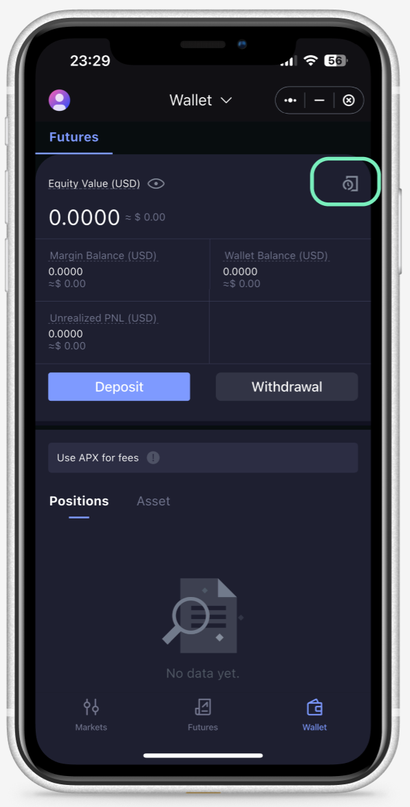 After you successfully deposit $USDT to your Aster account, you are good to go with the trading. Click the Future tab.