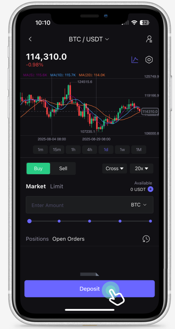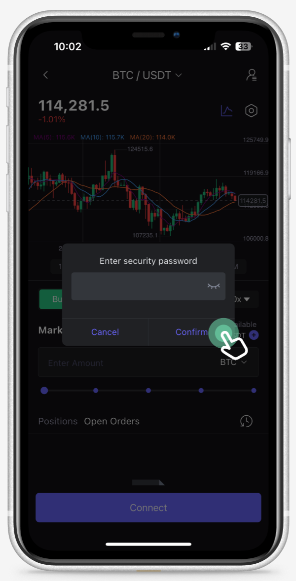 Tap on one of the Trading pairs, in this tutorial we will trade $BTC/USDT.