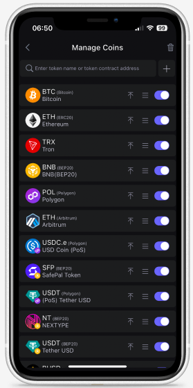 Launch your SafePal App, click the icon with the three dots, then click ‘Manage Coins’ on the App homepage.