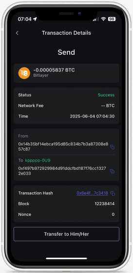 Since blockchain transfers are irreversible, double-check all the transfer details to avoid mistakes. Once you confirm the details, enter the Security Password and tap Confirm. For convenience, you can also enable fingerprint to sign the transfer.