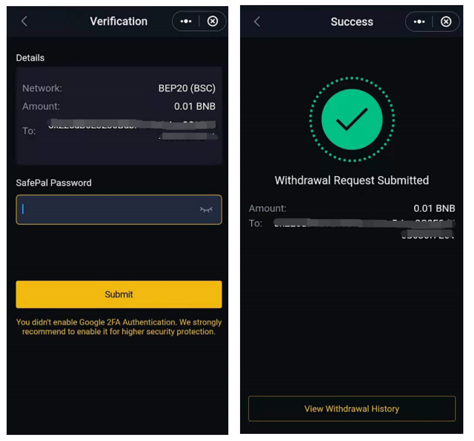 This article shows how to withdraw cryptos in the Binance DApp within the SafePal App.