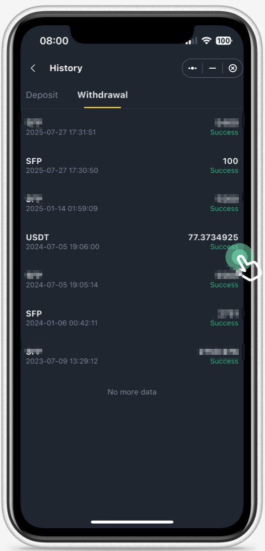 2. Select Withdrawal and select the transaction you want to check
