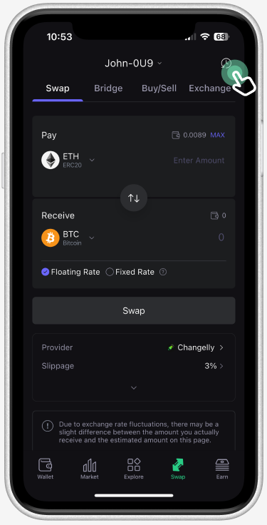 Open the SafePal App, go to the Swap tab, and click the order icon at the right upper corner of the Swap page.