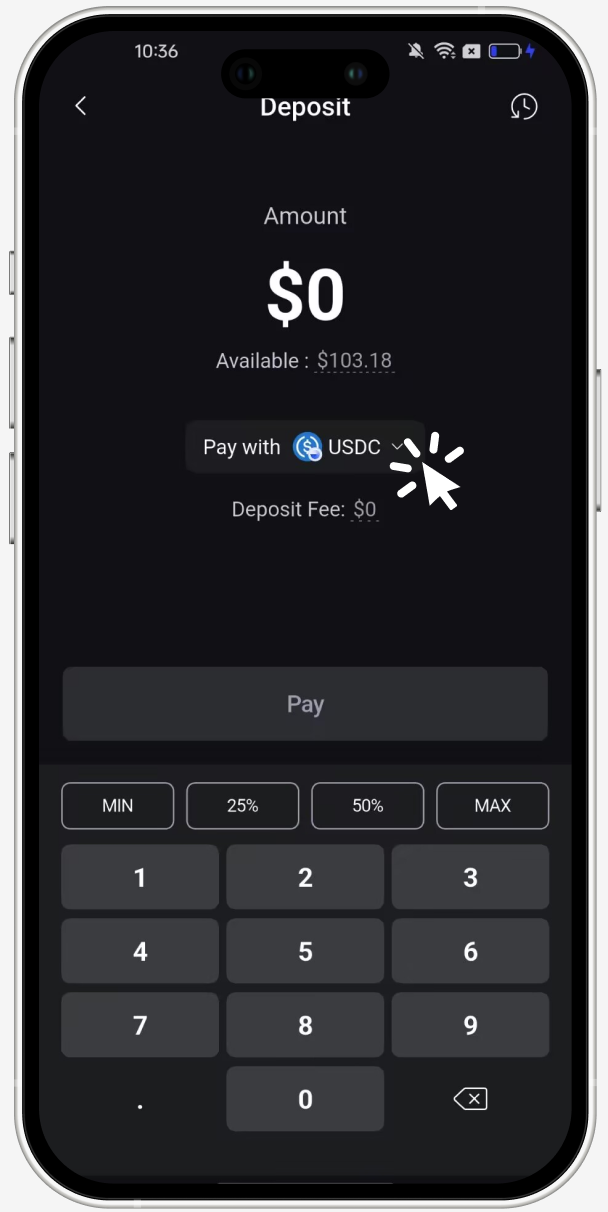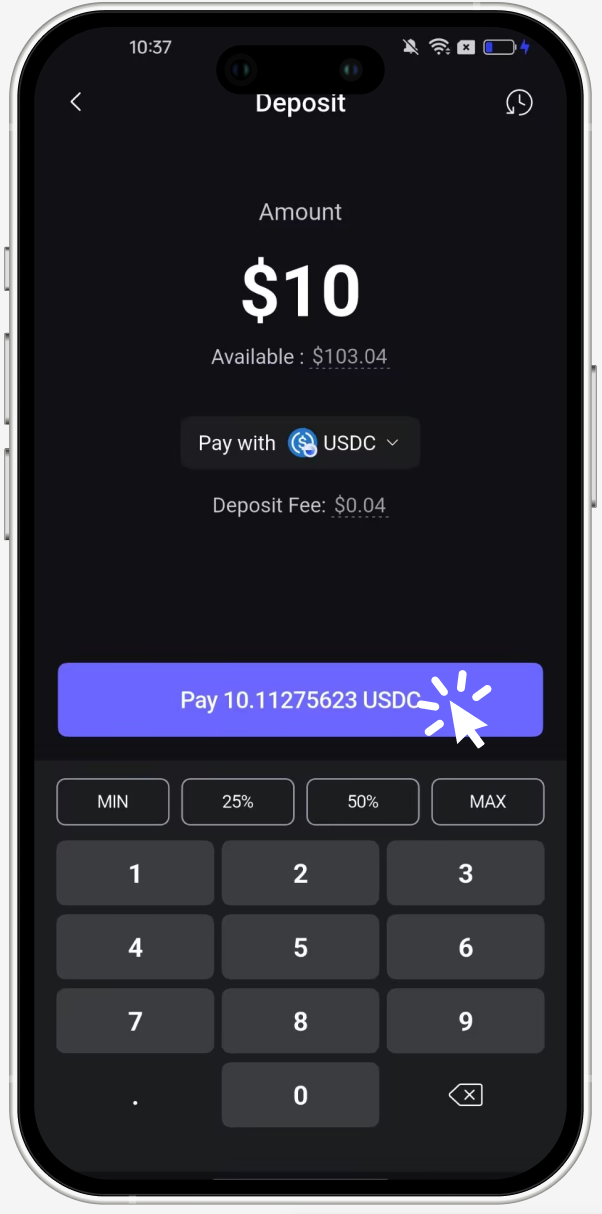 Your $USDC should now appear in the portfolio balance and be ready for trading.