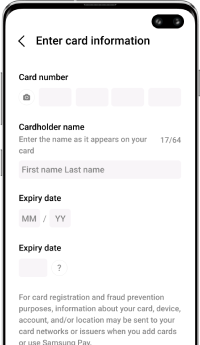 3. Insérez les détails de la carte - Entrez le numéro de la carte et le nom du titulaire de la carte