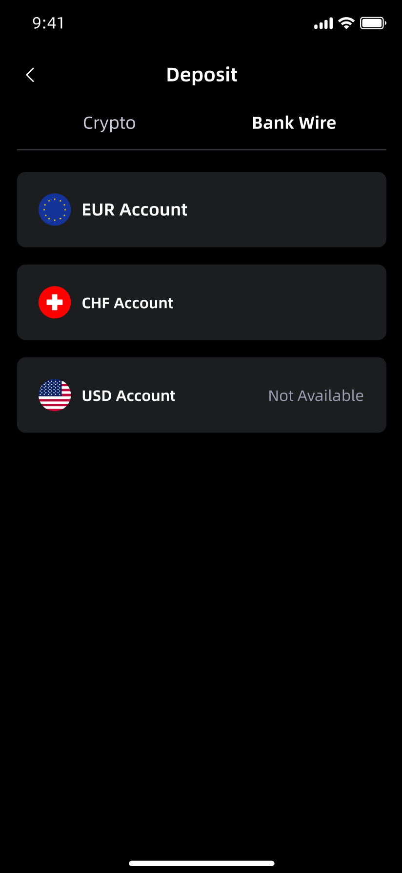 Étape 2 : Sélectionnez IBAN, puis sélectionnez le compte fiat que vous souhaitez déposer.