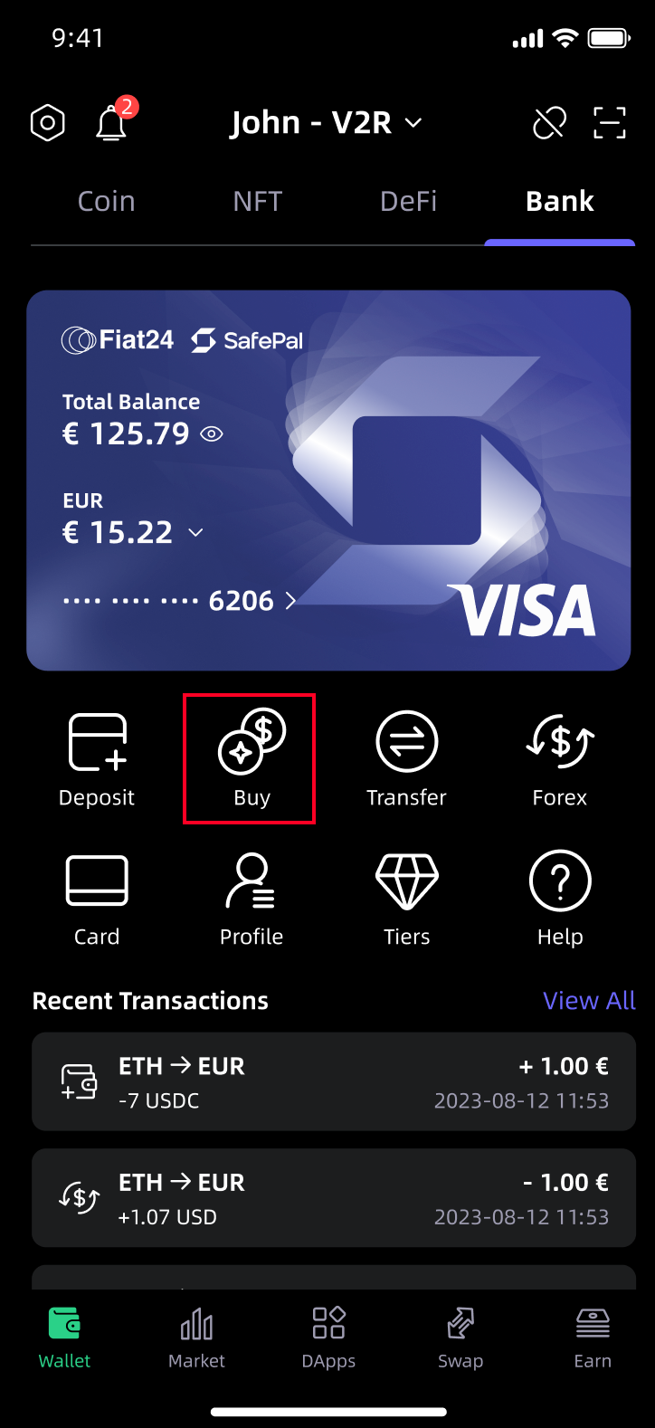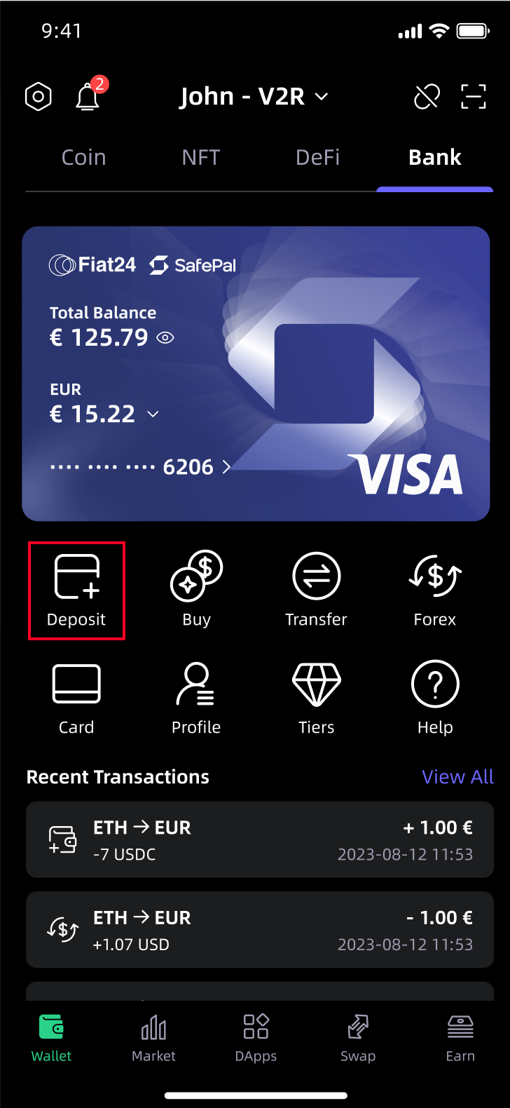 Vous pouvez déposer vos cryptomonnaies sur votre compte bancaire, et la banque les convertira automatiquement en euros et les stockera sur votre compte bancaire. Vous pouvez utiliser ces fonds pour effectuer des achats via la carte Visa co-brandée SafePal. Les étapes spécifiques sont les suivantes :