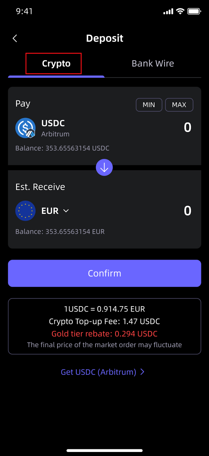 (1) Déposez des USDC sur votre compte bancaire.