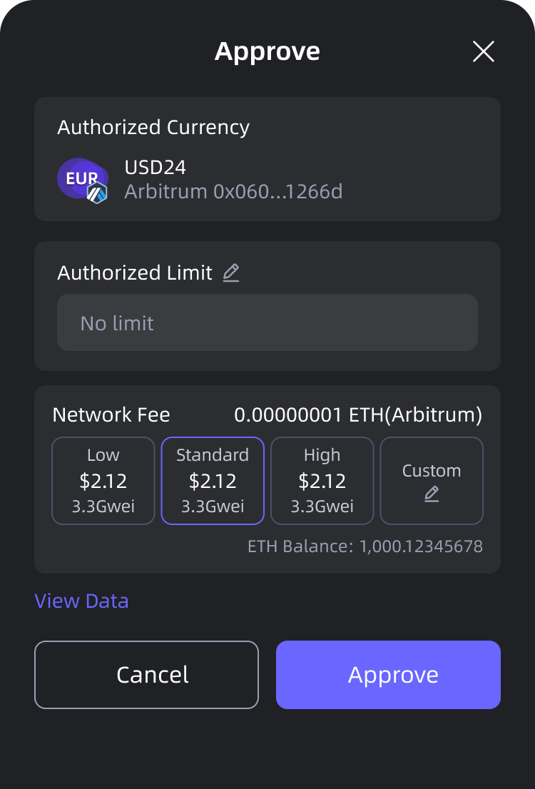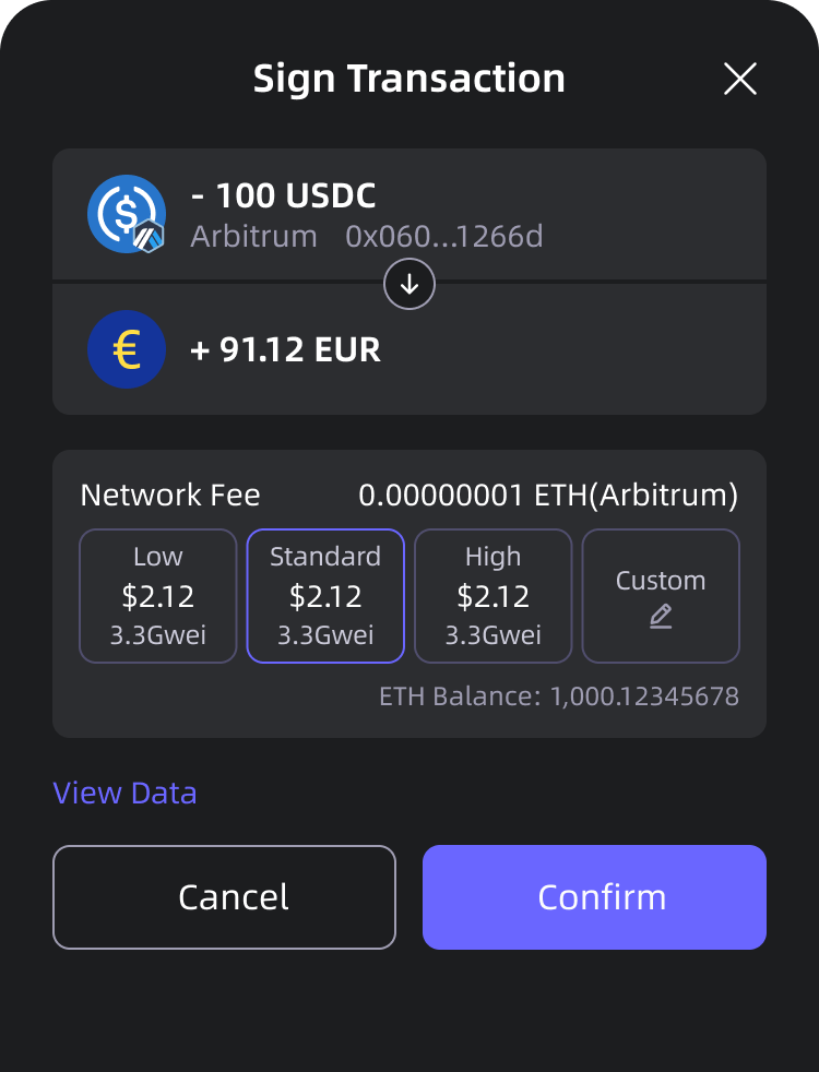 1. Поддерживается только USDC в сети Arbitrum. Если у вас недостаточно USDC, вы можете использовать SafePal Swap для обмена других монет на USDC (Arbitrum) перед внесением депозита.