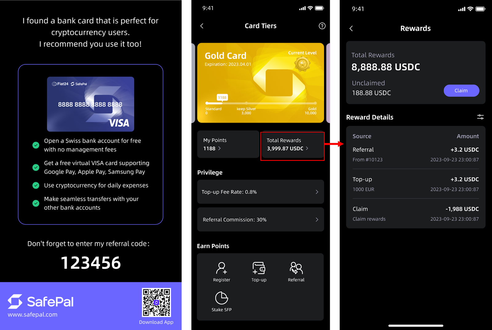 Владельцы аккаунтов SafePal Banking Gateway имеют возможность зарабатывать баллы, выполняя различные задачи, что позволяет им получать дополнительные преимущества и привилегии, такие как комиссии за рефералов и улучшенные ставки на пополнение. Достигнув определенных критериев по баллам, владельцы аккаунтов автоматически разблокируют соответствующие привилегии и продвигаются через различные уровни статуса аккаунта.