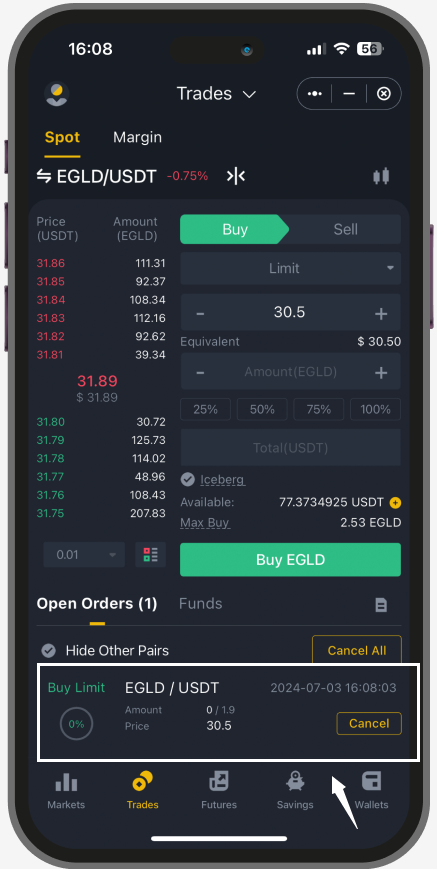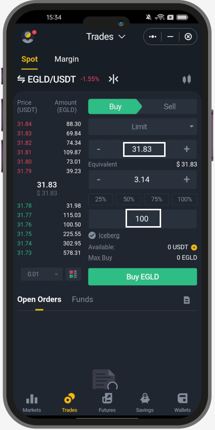 - Шаг 3 Создание спотового ордера на покупку $EGLD