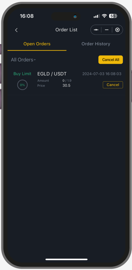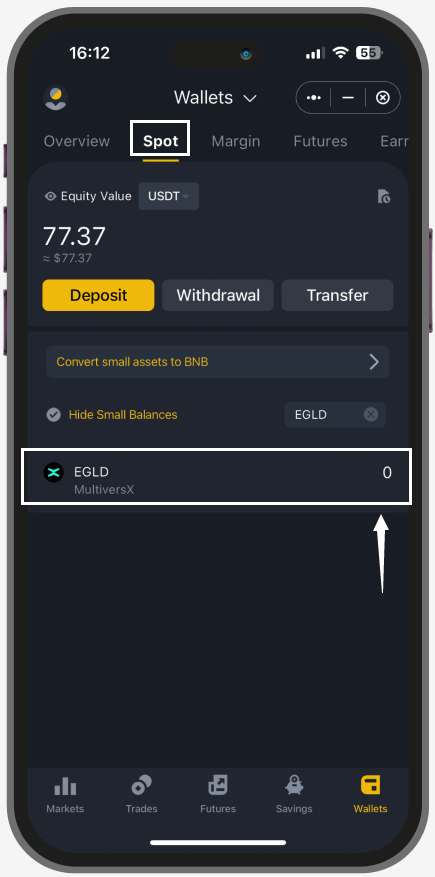 После завершения ордера вы можете проверить баланс купленных $EGLD в своем спотовом кошельке. И вы можете продолжить торговать, выводить или продавать монеты $EGLD!