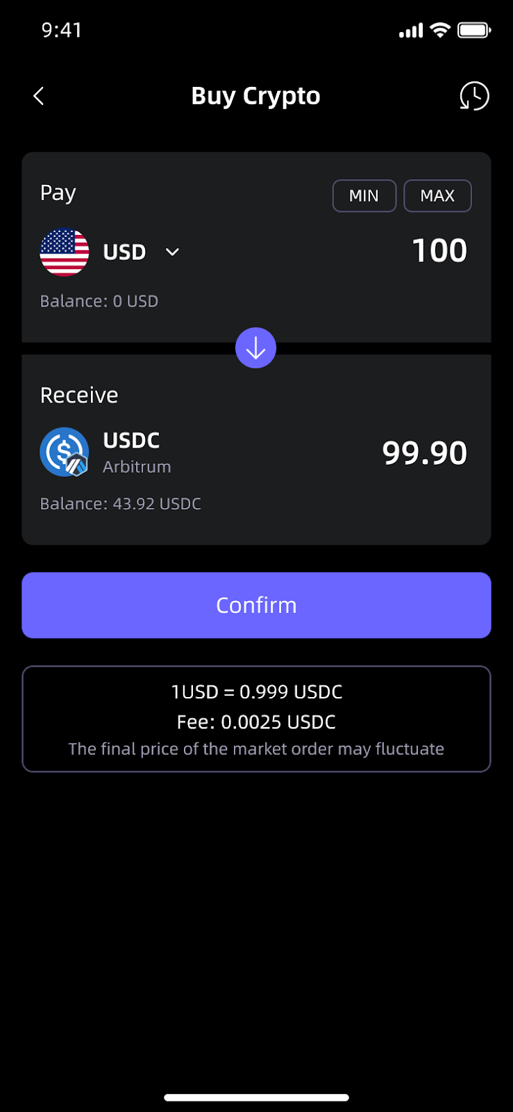 2. Покупка USDC (On Ramp)