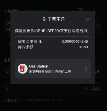 上述弹窗消息是两种典型的提示信息,告诉我们钱包中没有或没有足够的 Gas 费来支付转账。